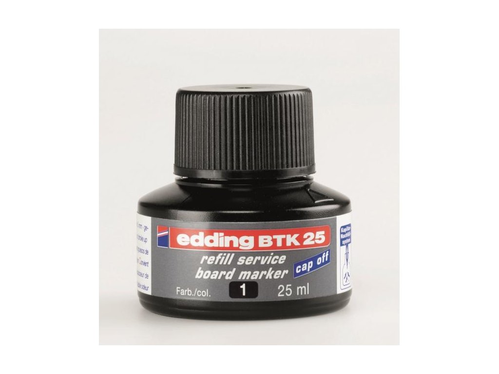 Atrament slabého zápachu s kapilárnym systémom na dopĺňanie popisovačov edding 250, 360, 361 a 363, určených na biele tabule. Tento chemický prípravok je nebezpečný. Obsah fľaštičky 25 ml.Pri doĺňaní vložte prednú časť popisovača špičkou do fľaštičky a po niekoľkých minútach bude popisovač pripravený k opätovnému použitiu.Farba: čierna