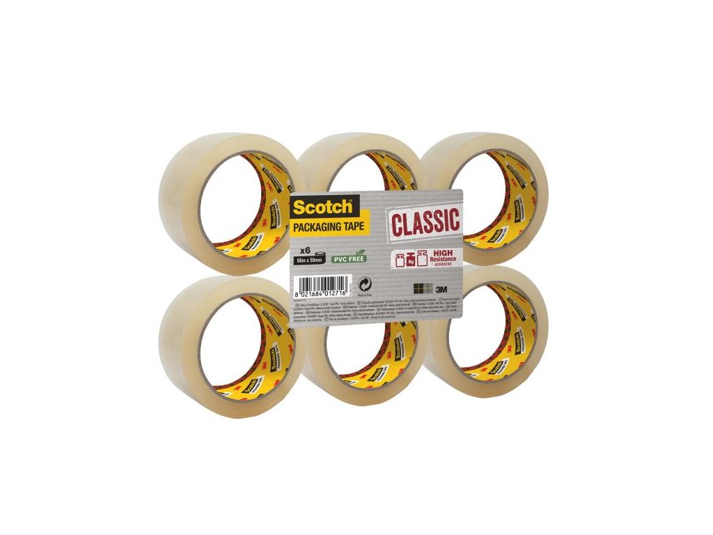 Scotch® Baliaca páska, neobsahuje PVC, transparentná, 48mm x 50m. Balenie 6 roliek. Určená pre ľahké obaly. Po aplikácii je odolná v širokom rozsahu teplôt, odolná voči vlhkosti a UV žiareniu. Akrylové lepidlo na vodnej báze je odolné voči starnutiu.Dodatočné parametre