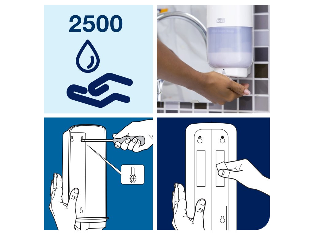 Dávkovač penového mydla TORK Elevation so senzorom a jednoduchým dávkovaním, ideálny pre deti a staršie osoby. Jednorazové náplne zaručujú vysokokvalitné mydlo. Výmena náplne v priebehu niekoľkých sekúnd. Materiál ABS plast. Rozmery dávkovača 113 × 278 × 130 mm. Farba biela.Dodatočné parametre