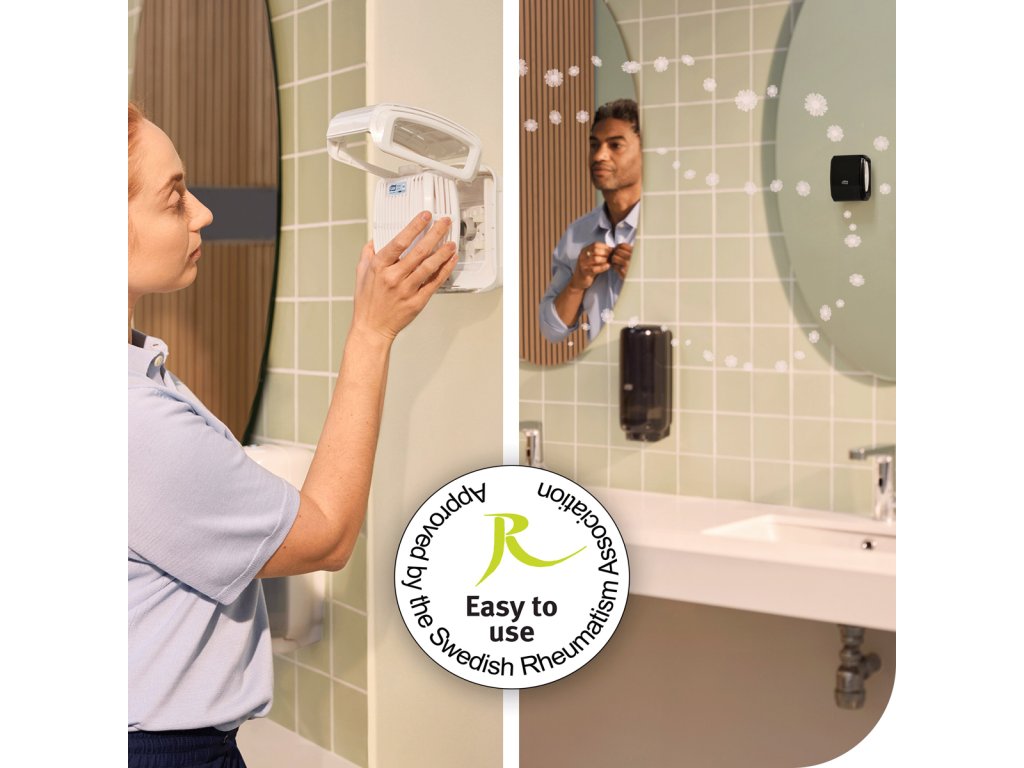 Tork osviežovač vzduchu Constant, neutralizujúci zápach je určený pre zariadenia, ktoré potrebujú eliminovať špecifické zápachy. Vysoká koncentrácia zložky neutralizujúcej zápach s tónmi citrónovej trávy, ktorá eliminuje nepríjemný zápach a poskytuje pocit nepretržitej sviežosti. Vhodné do Tork zásobníkov na osviežovač vzduchu Constant, ktoré vie upratovací personál dokázateľne ľahko používať.Starostlivo vybraná vôňa neutralizujúca zápach, ktorá tento zápach eliminuje nielen prekryje, zaistí svieži dojem na toalete po celý čas.