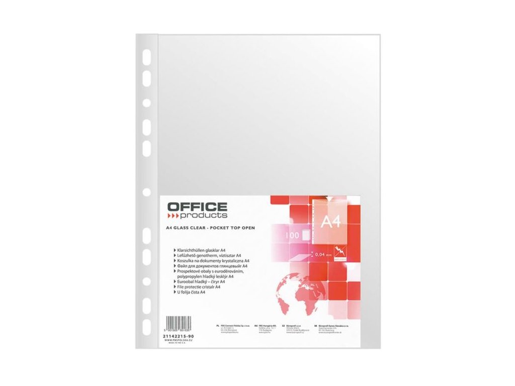 Priehľadný číry euroobal z polypropylénu. Otvor zhora, eurodierovanie, povrch lesklý a hladký. Formát A4. Balenie 100 ks. Balený v sáčku.Hrúbka: 40 mic.