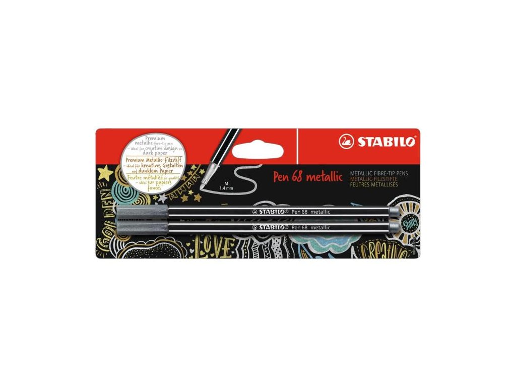 Popisovač STABILO Pen 68 2ks v blistri metalic strieborná
