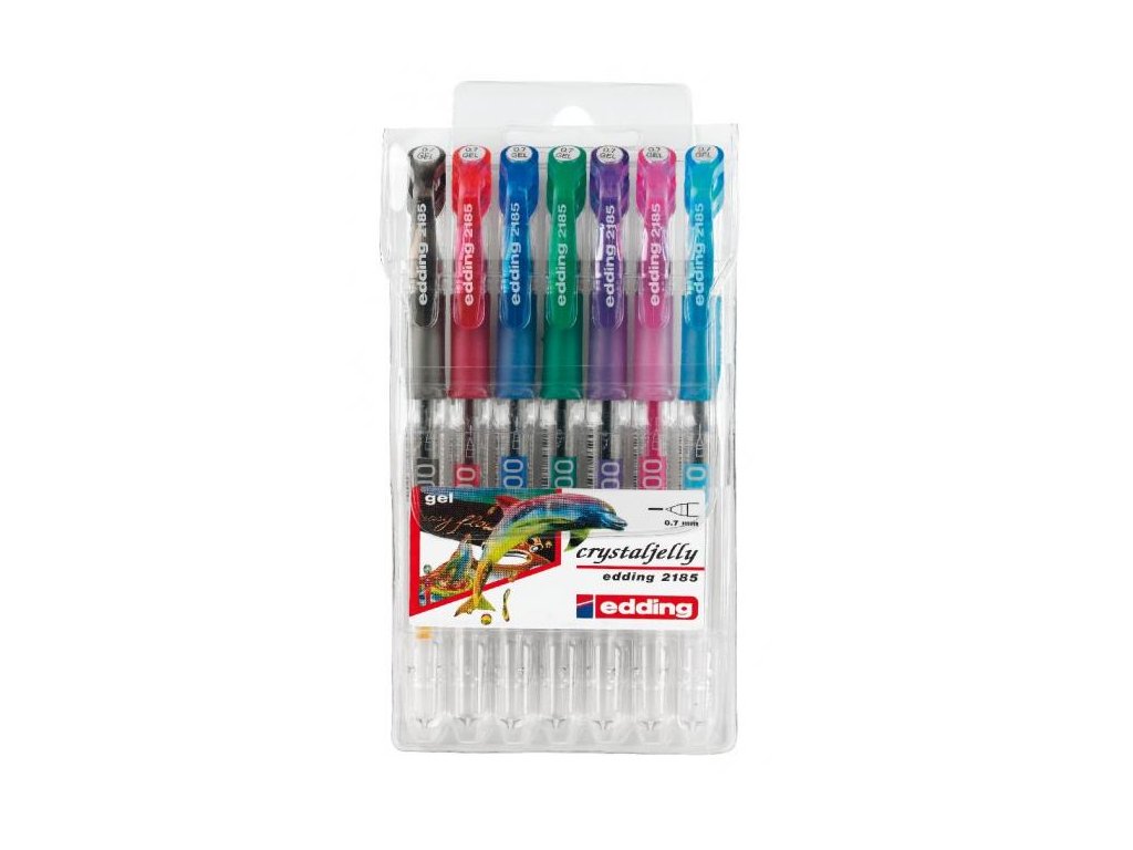 Jednorazový roller edding 2185 crystaljelly plnený špeciálnym gélom. Hrot pera uložený v akrylovej špičke umožňuje plynulé a súčasne veľmi presné písanie. Šírka stopy 0,7 mm. Sada 7 štandardných farieb.Dodatočné parametre