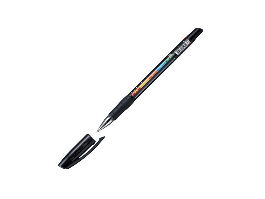 Plastové guľôčkové pero s priehľadom s ukazovateľom hladiny zostávajúceho atramentu, resp. počtu strán, ktoré je možné ešte napísať. Vhodné najmä pre školákov a študentov pri skúškach a testoch. Elastická úchytová zóna pre uvoľnené držanie, ľahko tečúci atrament pre rýchle a čisté písmo. Šírka stopy 0,45 mm. Väčšie balenie 10 ks.Dodatočné parametre