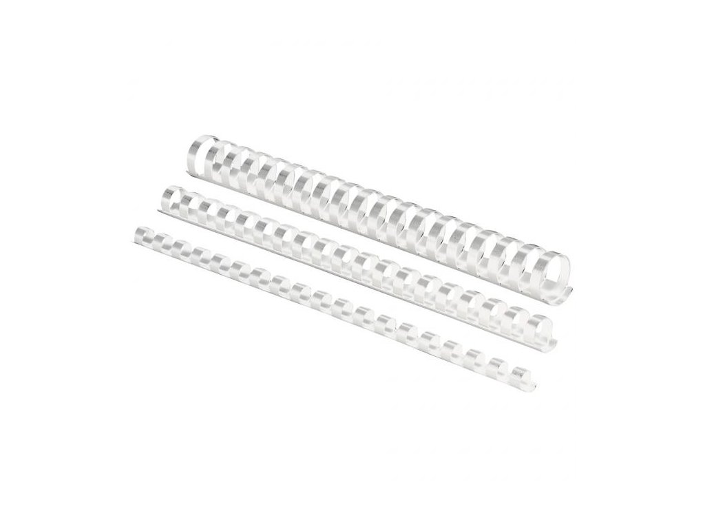 Plastové hrebene s 21 krúžkami, formát A4.Farba: biela