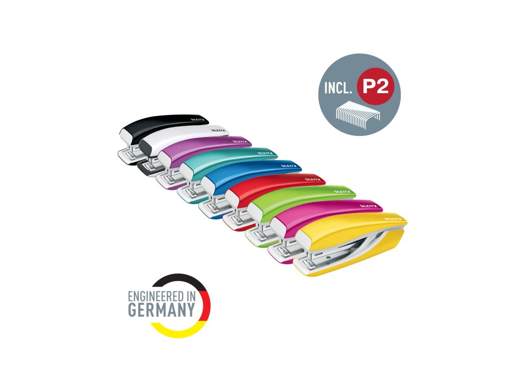 Malá zošívačka v moderných žiarivých farbách ideálna nielen do kancelárie, ale aj domov alebo na cesty. Vždy perfektné zošitie vďaka patentovanej technológii DIT. V kombinácii so spinkamii Leitz Power Performance P2 (č. 10) dosiahnete vždy jednoduché a správne zošitie.Kapacita 10 hárkov. Vrecková zošívačka. Patentovaná technológia DIT na spoľahlivé zošívanie. Balenie v škatuľke, vrátane spiniek. Otvorením ramena o 180° je možné použiť nástenkové zošívanie (takrovanie). Farba žltá.Dodatočné parametre