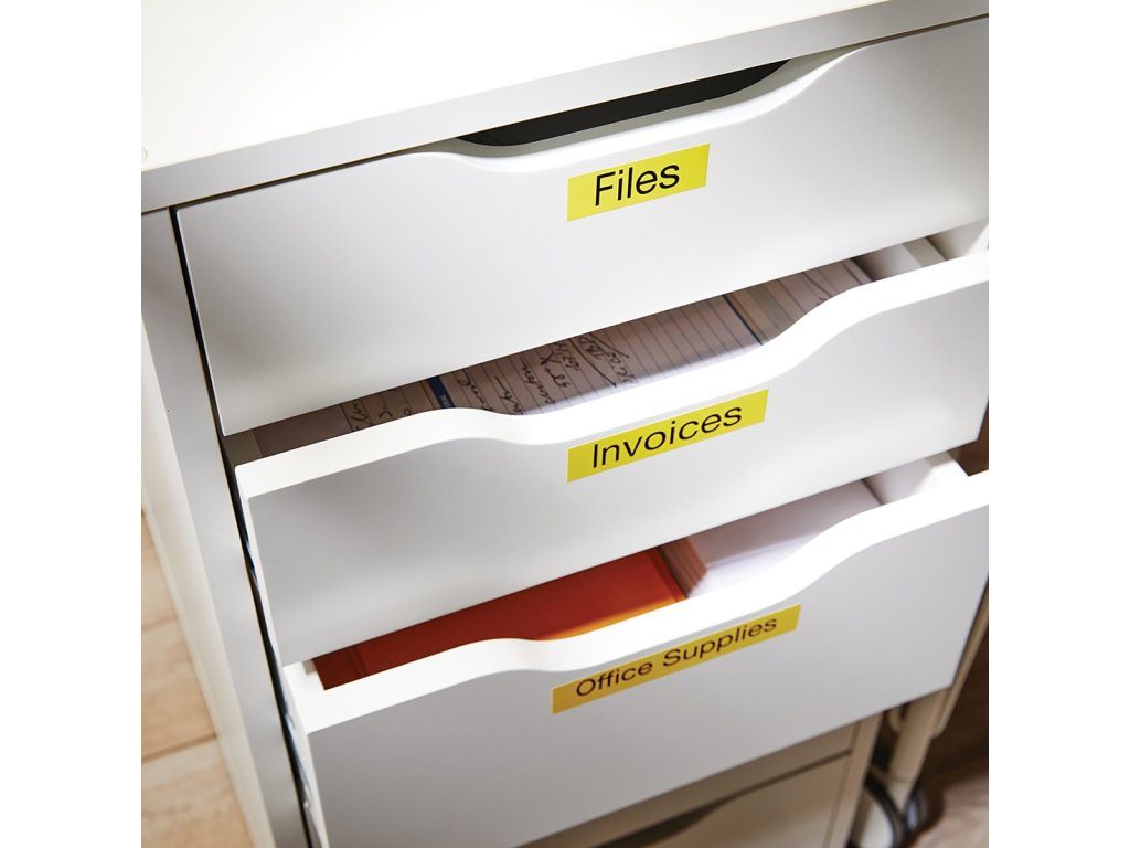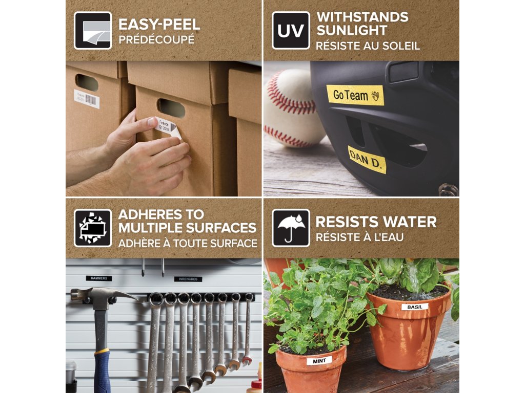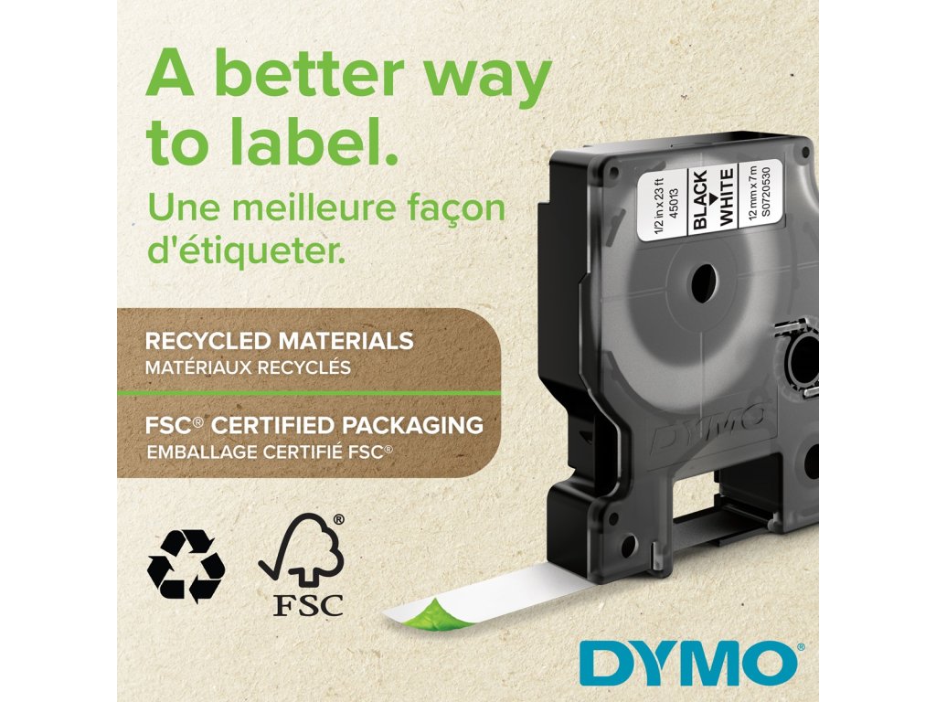 Permanentné pásky odolné voči vode, olejom, organickým zlúčeninám. Podkladová páska, text a lepidlo odolávajú teplotám -30 °C až do +150 °C. Majú dobrú priľnavosť na ABS, PVC, PE, Acrylic, sklo, drevo, papier a nerezovú oceľ. Sú určené pre Dymo zariadenia. Dĺžka 7 m.Šírka : 19 mm