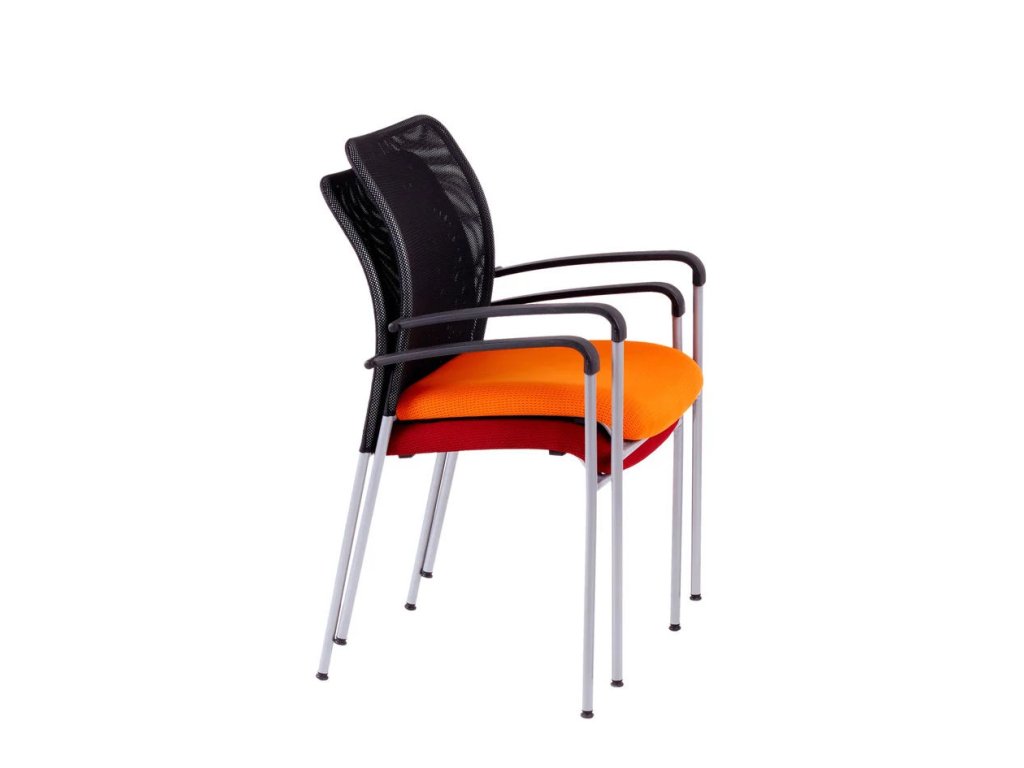 Rokovacia čalúnená stolička so sieťovinovým operadlom.