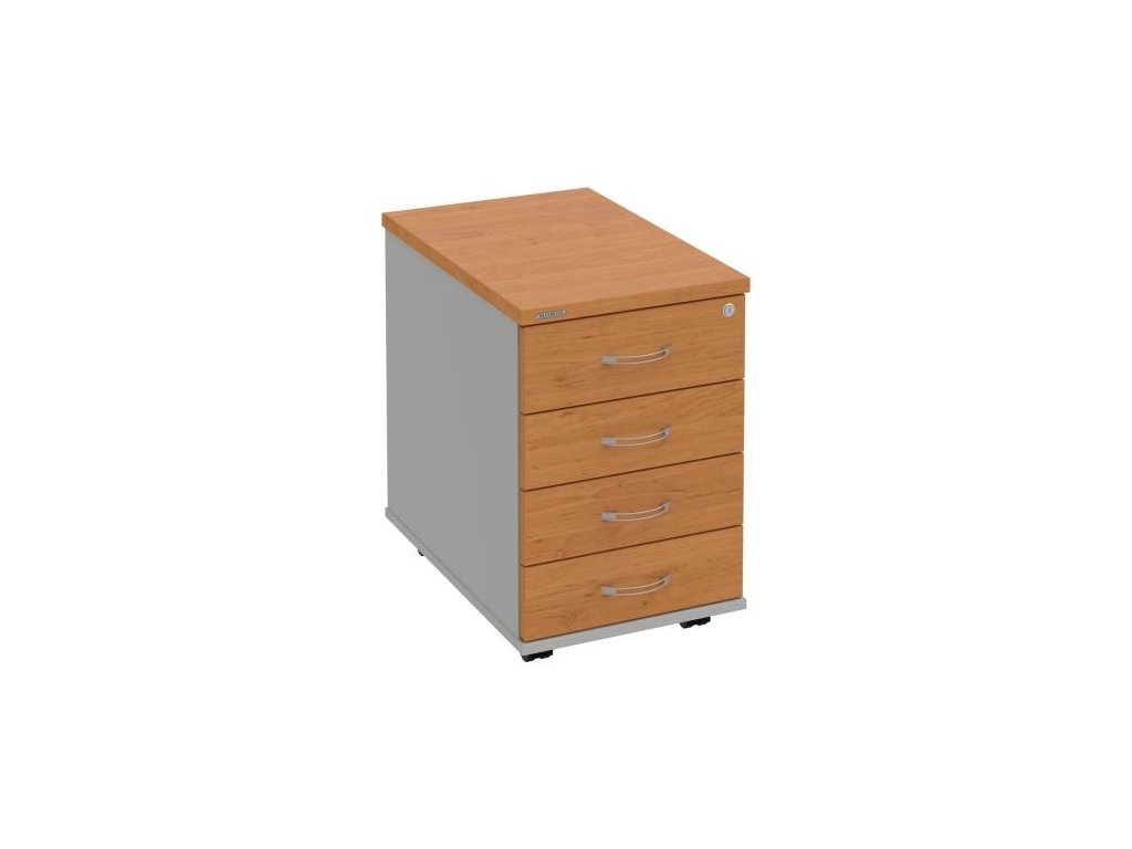 Kontajnery - všetko uložené a vždy poruke. Kontajnery sa väčšinou umiestňujú pod stoly. Mobilné modely sú vybavené kolieskami, je možné ich premiestniť podľa potreby. Základným materiálom korpusov je kvalitná laminovaná drevotriesková doska hrúbky 18 mm. Pre dlhšiu životnosť je na horný diel korpusu použitá doska, ktorej hrúbka je 25 mm. Korpusy a čelá zásuviek sú chránené proti poškodeniu hranou ABS 2 mm. Kontajnery sú vybavené zámkom s centrálnym zamykaním. Vďaka integrovanému systému STOP-CONTROL s centrálnym zámkom u väčšiny kontajnerov sa nemusíte báť prevrhnutiu kontajnera alebo prípadného privretia ruky. Systém zaručí, že pri otvorení jednej zásuvky sa ostatné zásuvky automaticky zablokujú. Zásuvky sú z plastu, ktorý je ľahko umývateľný a vhodný pre jednoduchú údržbu. Praktickou súčasťou vrchnej zásuvky je prehľadný organizér a priestorové deliace priečky. Vaše ceruzky, sponky a ďalšie kancelárske potreby budú vždy na poriadku. Organizér a deliace priečky sú súčasťou každého kontajnera. Na kontajnery Hobis sa vzťahuje päťročná záruka.