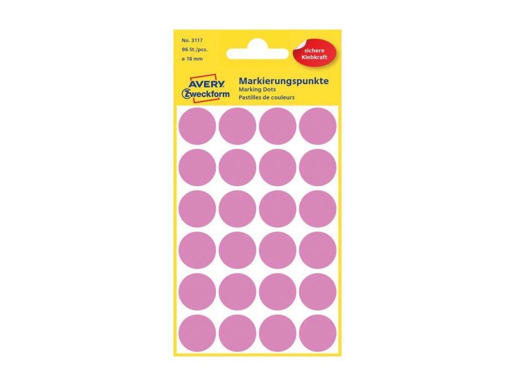 Kruhové etikety na ručný popis. Priemer 18 mm, v balení 96 etikiet. Farba ružová.Dodatočné parametre