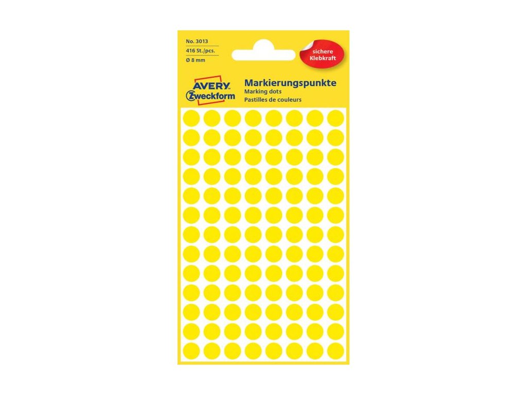 Etikety kruhové 8mm Avery žlté