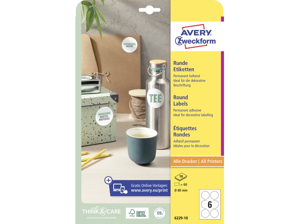 Etikety univerzálne kruhové 80mm Avery A4 10 hárkov