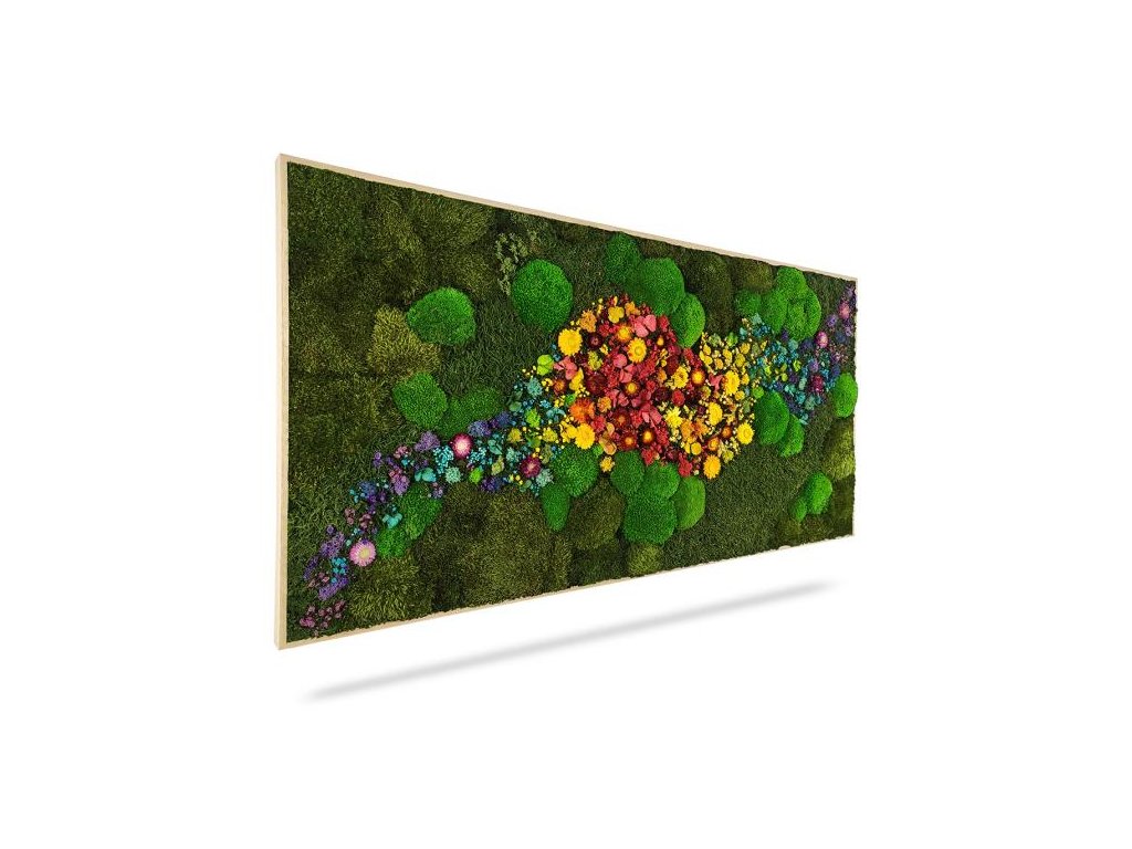 Machový obraz RASTLINY Acebo je tvorený kombináciou machov v zelených odtieňoch s kontrastne farebnými stabilizovanými kvetmi, ktoré vytvárajú energický a veľmi moderný dizajn, ktorý oživí každý interiér.
