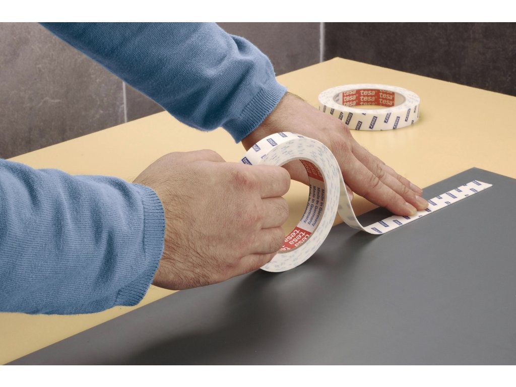 Silná obojstranná lepiaca páska na upevňovanie plochých predmetov vo vlhkých miestnostiach, ako sú napr. kúpeľne. Ideálna na zrkadlá. Udrží zrkadlá s maximálnymi rozmermi 70 × 70 cm a hrúbkou do 4 mm. Rozmery pásky 19 mm × 5 m.Dodatočné parametre