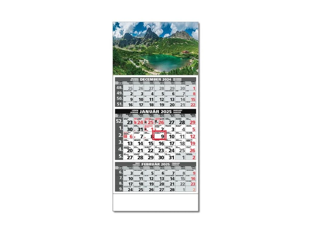 Plánovací kalendár s 3-mesačným kalendáriom s menami v SK + CZ, názvy mesiacov a dní v SK, CZ, EN, DE a HURozsah: 12listov