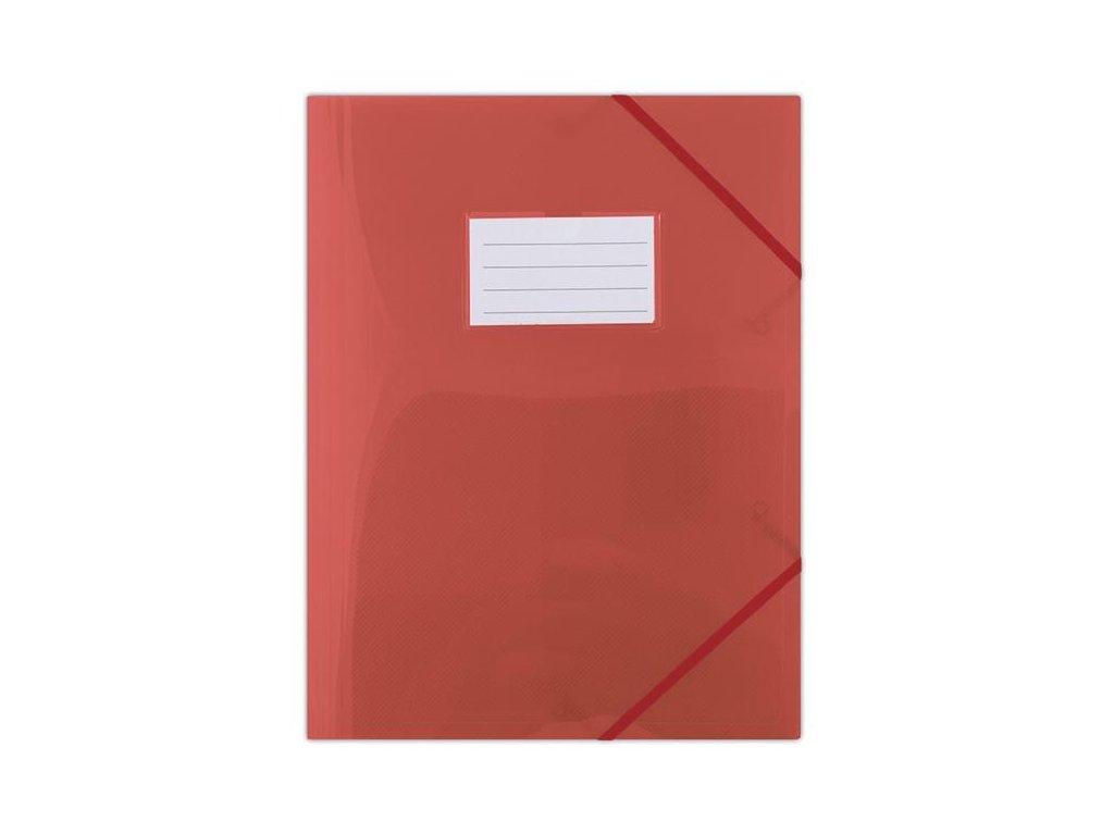 Polopriehľadný obal z polypropylénu hrúbky 480 um. Tri klopy, vymeniteľná etiketa. Formát A4. Väčšie balenie 25 ks.Farba: červená