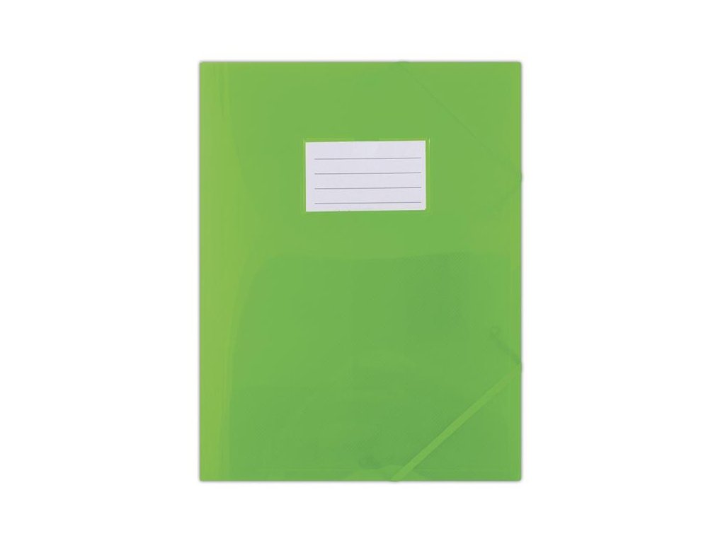 Polopriehľadný obal z polypropylénu hrúbky 480 um. Tri klopy, vymeniteľná etiketa. Formát A4. Väčšie balenie 25 ks.Farba: zelená