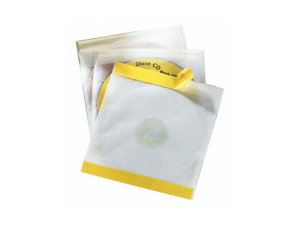Lepiace vrecká s klopou a vnútornou ochrannou vrstvou chrániacou 2 CD/-DVD alebo 1 CD/-DVD s brožúrkou pred poškriabaním, prachom a nečistotou. Môžu byť nalepené prakticky na akýkoľvek povrch. Rozmery 127 x 127 mm.Balenie 10 ks