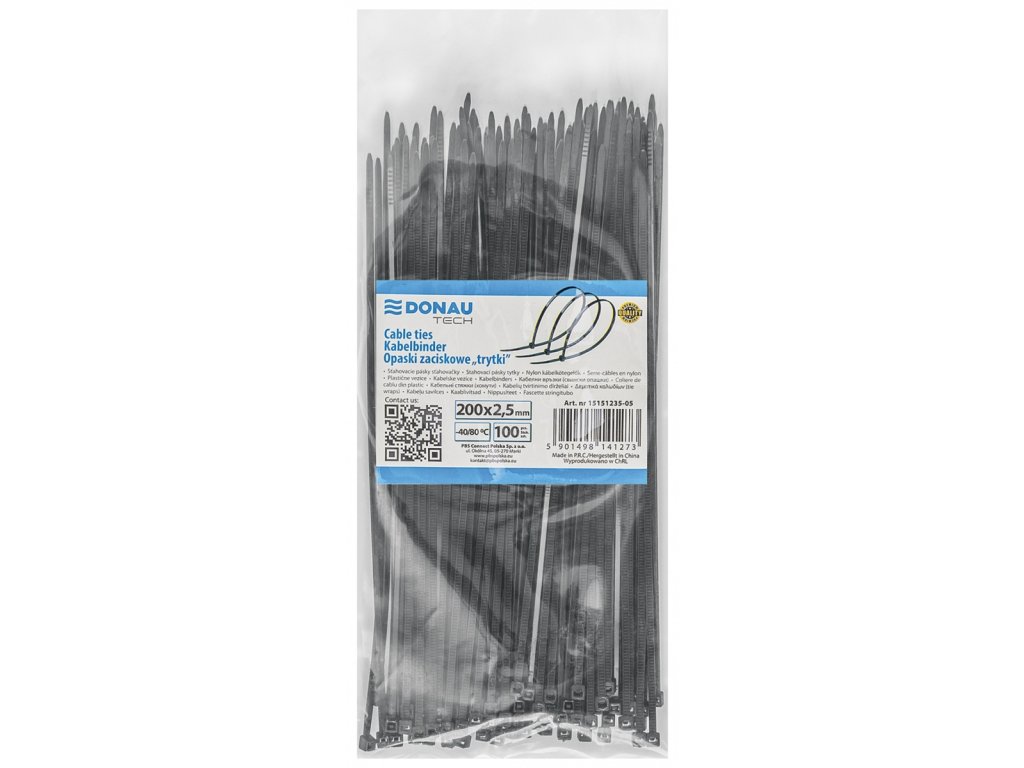 Sťahovacia páska na káble DONAU TECH 200x2.5mm, 100ks, čierna