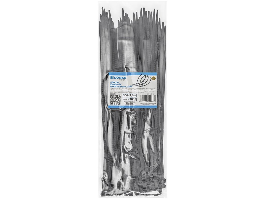 Sťahovacia páska na káble DONAU TECH 300x4.8mm, 100ks, čierna
