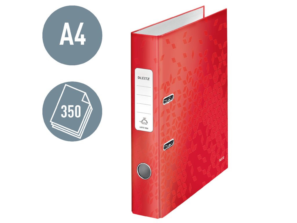 Pákový zakladač rady WOW v žiarivej červenej farbe s dvojfarebným efektom. Unikátna patentovaná mechanika Leitz 180° poskytuje širšie otvorenie, možnosť zakladania väčšieho množstva papierov a o 20 % rýchlejšiu prácu so zakladačom. Vybavený chrbtovým krúžkom, rado zámkom a samolepiacim chrbtovým štítkom, ktorý môže byť v prípade potreby odstránený. Šírka chrbta 5 cm, kapacita 350 listov. Väčšie balenie 10 ks.Dodatočné parametre