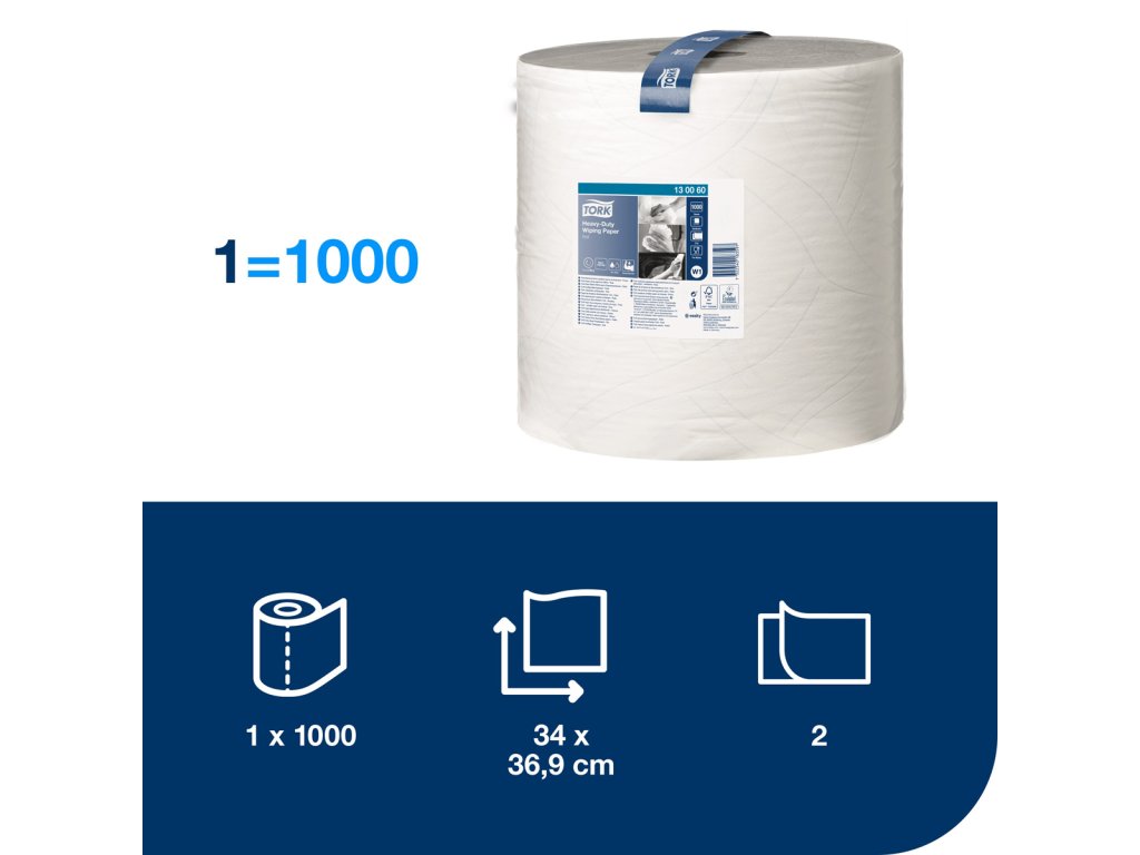2-vrstvová viacúčelová papierová utierka Tork Heavy-Duty je ideálna na utieranie tekutín a ručné utieranie. Túto papierovú utierku možno použiť v Tork nadstavcových zásobníkoch na podlahu či na stenu, ktoré sú vyvinuté pre bezpečnosť, účinnosť a spoľahlivosť s jednoduchým napĺňaním a odtŕhaním a možnosťou vybrať požadovanú papierovú utierku jednou rukou.Farba: biela