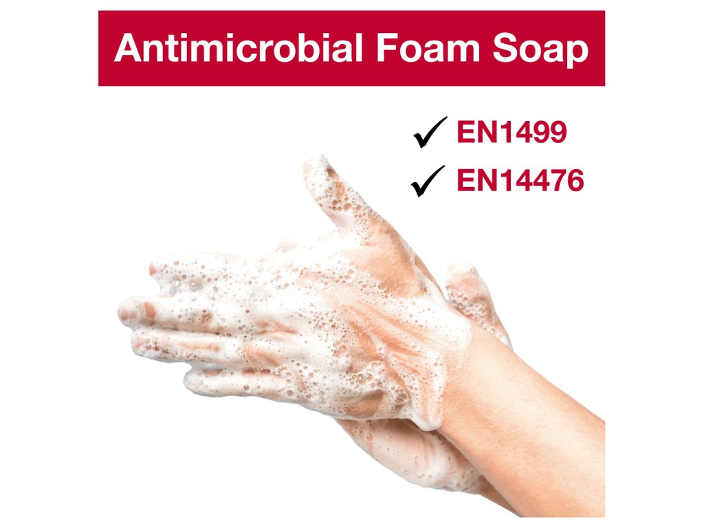 Jednorazová náplň penového mydla prémiovej kvality do dávkovačov TORK, ktoré sú overené ako ľahko používateľné a všetkým používateľom zabezpečujú správnu hygienu rúk. Vysokokvalitné mydlo, jednoduchá výmena v priebehu niekoľkých sekúnd. Dôkladne si umývajte ruky s TORK antimikrobiálnym penovým mydlom s certifikátom EN 1499. Jeho nízkoalkoholová receptúra je vysoko účinná proti baktériám, vírusom a kvasinkám. Je kombináciou bežného mydla na ruky a dezinfekcie v jednom umývacom prostriedku. Je tiež bez pridaných vôní a farbív, čo znižuje alergické reakcie.Obsahuje 2 500 dávok. Vôňa alkoholu. Objem 1 liter.