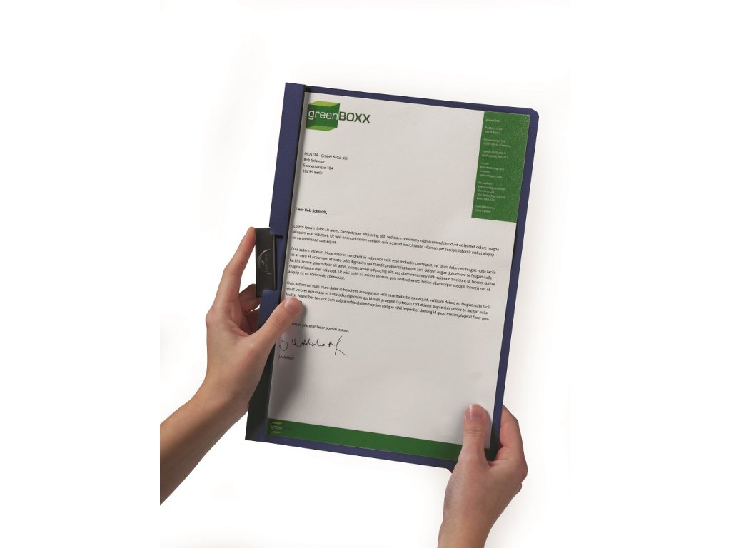Obal vyvinutý spoločnosťou DURABLE pre viazanie nedierovaných listov. Materiál z PVC s unikátnym kovovým klipom, ktorý sa prispôsobí vloženému počtu listov a priehľadnou prednou stranou. Ideálny na prezentácie, ponuky, správy, poznámky na konferencie, semináre a pod. Formát A4. Kapacita 1-30 listov. Väčšie balenie 25 ks.Kapacita: 1-30 listov