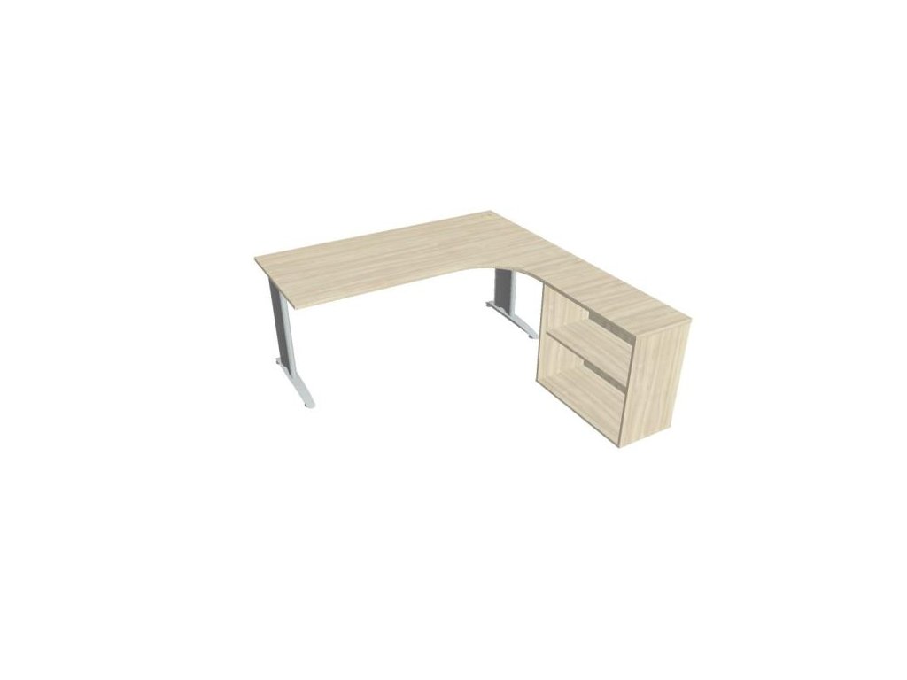 Pracovný stôl Flex, ergo, ľavý, 180x75,5x200,0 (80x40) cm, agát/kov