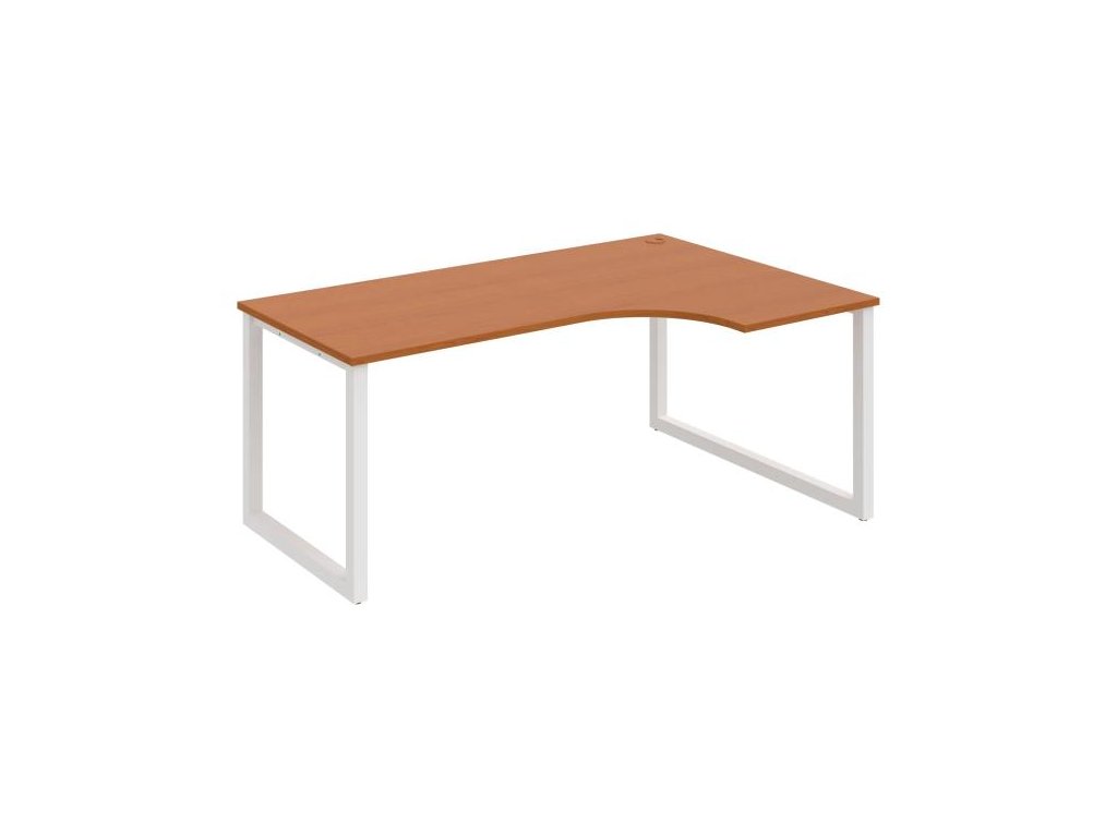 Pracovný stôl UNI O, ergo, ľavý, 180x75,5x120 cm, čerešňa/biela