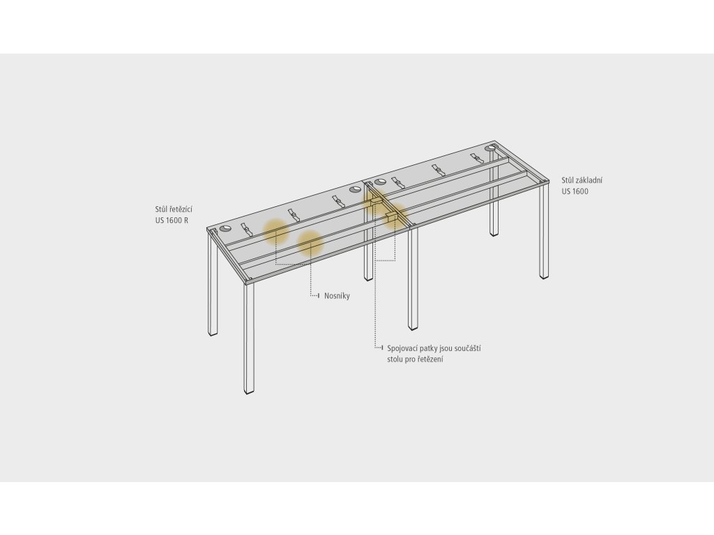 Pracovný stôl Uni k pozdĺ. reťazeniu, 140x75,5x80 cm, orech/biela