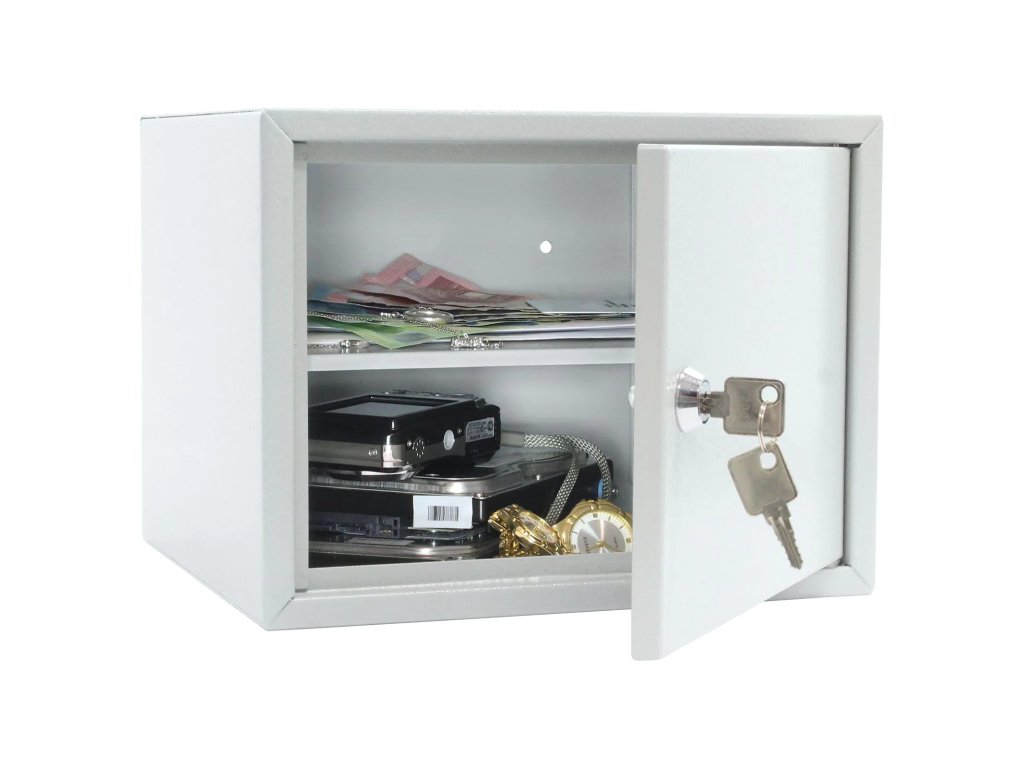 Sejf Home Case 2 je vhodný na uloženie peňaženky, osobných vecí, dokladov alebo kľúčov. Vo vnútri sa nachádza polička. Sejf je vyrobený z kvalitného pozinkovaného materiálu a má pripravené otvory na spodnej a zadnej strane. Materiál na upevnenie je súčasťou balenia.