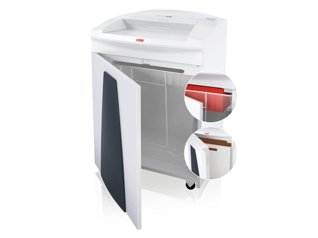 Komfortný model s kolieskami pre vyťažené kancelárie. Plynulý a tichý chod motora. Silný motor garantuje vysokú kapacitu skartovania, vysokokvalitné materiály zabezpečujú dlhú životnosť skartovačky. Rez 5,8 mm. Skartuje spinky, kancelárske spony, magnetické karty, CD. Kontrolné okno, mobilné na kolieskach.-kapacita listov: 35-37