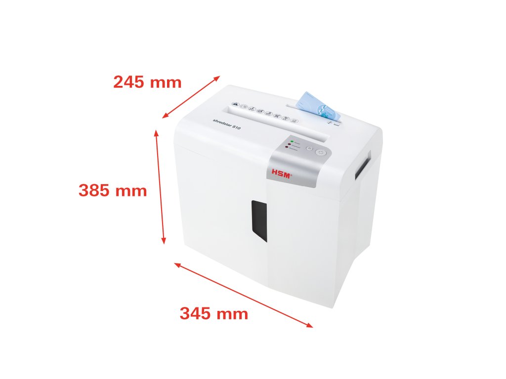 Ochrana údajov pre každého. Táto moderná a kompaktná skartovačka dokumentov s narezanými páskami so samostatnou rezacou jednotkou CD spoľahlivo a potichu zničí vaše dáta doma aj v malej kancelárii. Skartuje CD, DVD, plastové karty a spinky. Rozdrvený materiál sa samostatne separuje. Plný zásobník sa zobrazí na displeji a stroj sa automaticky vypne. Automatický spätný chod eliminuje zasekávanie papiera a zaisťuje plynulú prevádzku. ED indikátor zobrazuje prevádzkový stav zariadenia: napájanie, preťaženie, prehriatie. Integrovaná svetelná závora automaticky spustí zariadenie po vložení papiera do podávača a automaticky sa zastaví po dokončení skartovania. Stav naplnenia odpadovej nádoby je vždy viditeľný cez kontrolné okienko. Veľkosť rezu: 6 mm, kapacita 10 listov. Šírka vstupu 220 mm, objem odpadového koša 18 l. Rozmery 345 x 245 x 385 mm (šxhxv), hmotnosť 3,89 kg.Dodatočné parametre