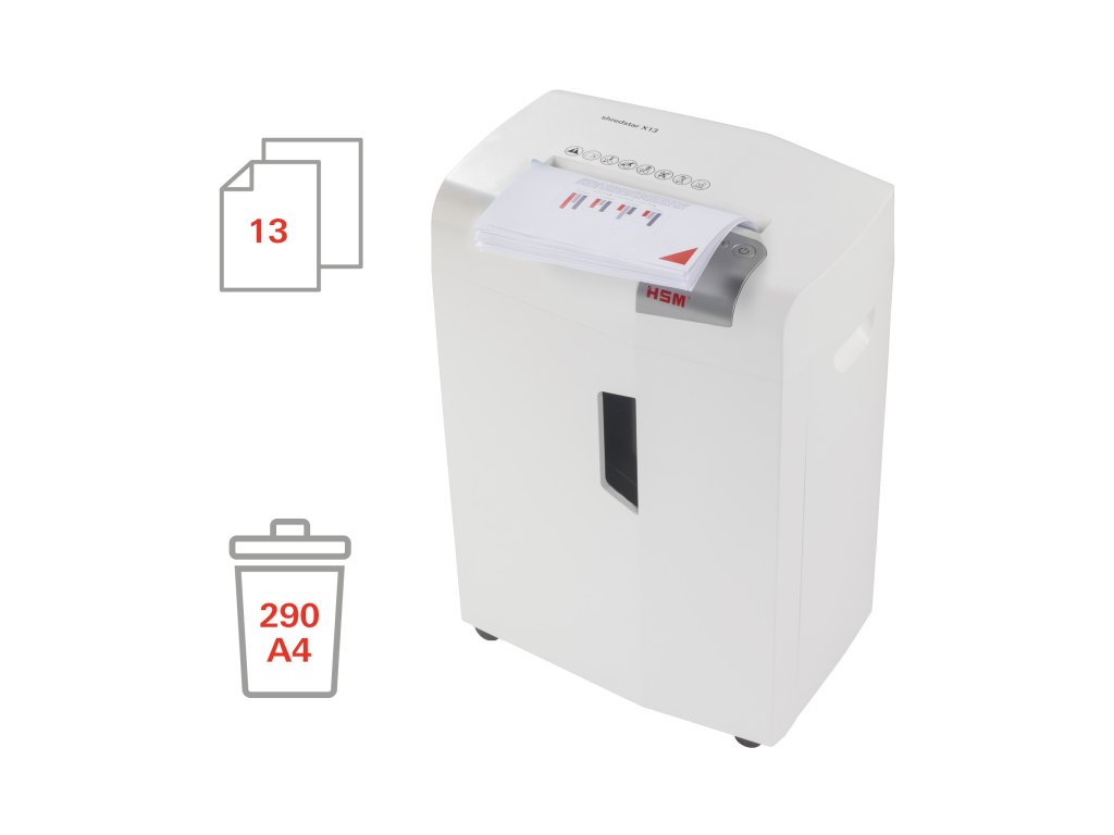 Užívateľsky prívetivý a funkčný, s funkciou proti zaseknutiu papiera. Vhodné až pre 5 osôb. CD a DVD, plastové karty a spinky možno ľahko skartovať pomocou samostatnej jednotky na rezanie CD. V oddelenom kontajneri na CD odpad je rozdrvený materiál separovaný a teda už vytriedený na likvidáciu. Plný kôš je indikovaný na displeji a stroj sa automaticky vypne. Nádobu na odpad možno ľahko vybrať a vyprázdniť. Automatický spätný chod eliminuje zasekávanie papiera a zaisťuje hladký chod. LED indikátor zobrazuje prevádzkový stav zariadenia: napájanie, preťaženie, prehriatie, plný zásobník, otvorené dvierka. Nádobu na odpad môžete kedykoľvek vidieť cez kontrolné okienko. Pre pohodlie sú na skartovači kolieska, takže sa dá ľahko pohybovať. Veľkosť rezu: 4 x 37 mm, kapacita 13 listov. Šírka vstupu 230 mm, objem odpadového koša 23 l. Rozmery 390 x 300 x 595 mm (šxhxv), hmotnosť 12,5 kg.Dodatočné parametre