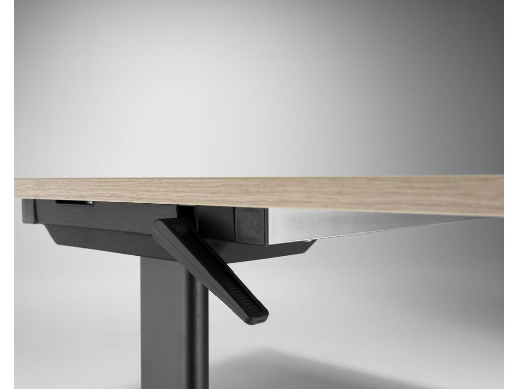 Dosku stola je možné vybrať z ponuky siedmich odolných laminátových dekorov, pričom nakláňací mechanizmus s nohami je kompatibilný s akoukoľvek štandardnou stolovou doskou na trhu.