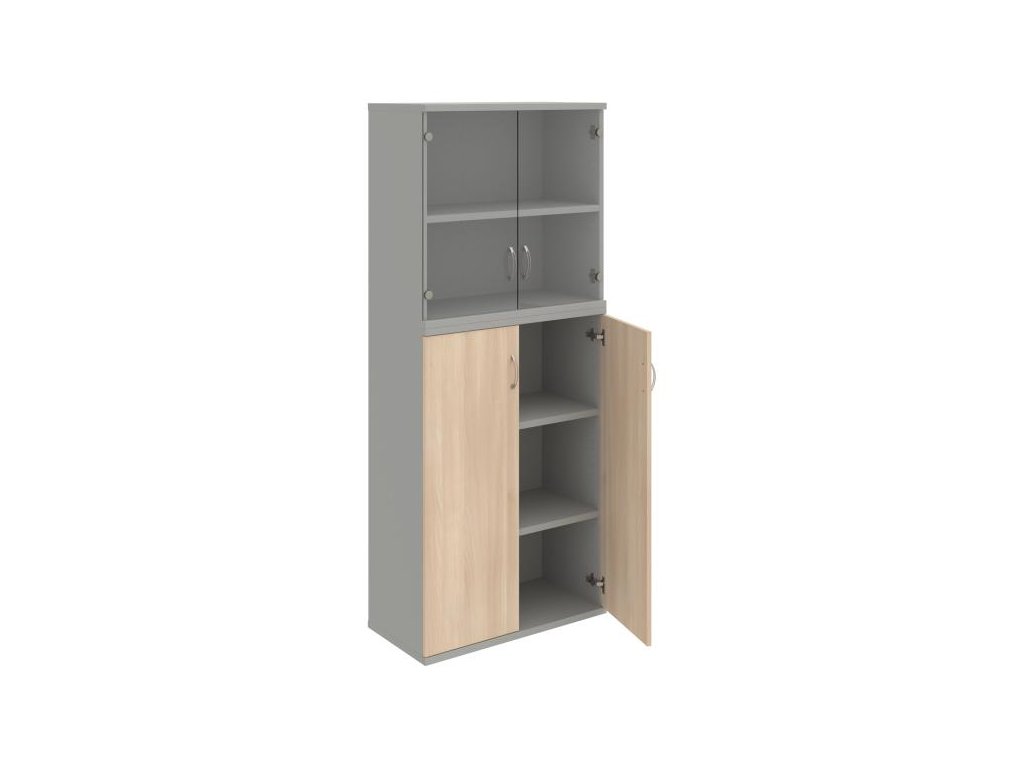 Kombinovaná skriňa - dvere/nika. Kancelárske skrine STRONG majú robustnú konštrukciu a vyššiu nosnosť políc ako bežné kancelárske skrine.V ponuke sú skriňové moduly s výškou 185 cm, 111 cm alebo 74 cm a šírky 80 cm alebo 40 cm. Hĺbka všetkých modelov skriňového radu STRONG je 40 cm.Chrbát, vyrobený z 8 mm hrubých dosák, je obojstranne pohľadový, takže skrine môžete použiť ako priestorový deliaci prvok. Hrúbka samotných políc je 25 mm, čo znamená nosnosť 80 kg na 1 policu.Korpusy, dvierka a police skríň sú olepené odolnou 2mm ABS hranou, ktorá garantuje dostatočnú ochranu proti poškodeniu.