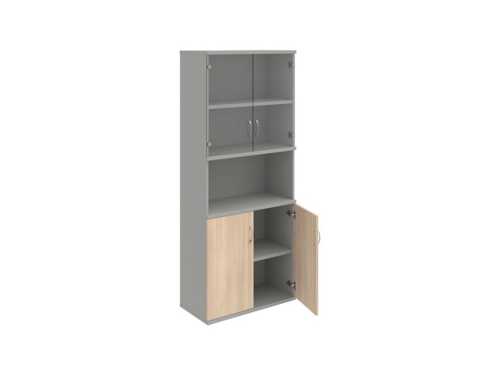 Kombinovaná skriňa - dvere/nika. Kancelárske skrine STRONG majú robustnú konštrukciu a vyššiu nosnosť políc ako bežné kancelárske skrine.V ponuke sú skriňové moduly s výškou 185 cm, 111 cm alebo 74 cm a šírky 80 cm alebo 40 cm. Hĺbka všetkých modelov skriňového radu STRONG je 40 cm.Chrbát, vyrobený z 8 mm hrubých dosák, je obojstranne pohľadový, takže skrine môžete použiť ako priestorový deliaci prvok. Hrúbka samotných políc je 25 mm, čo znamená nosnosť 80 kg na 1 policu.Korpusy, dvierka a police skríň sú olepené odolnou 2mm ABS hranou, ktorá garantuje dostatočnú ochranu proti poškodeniu.