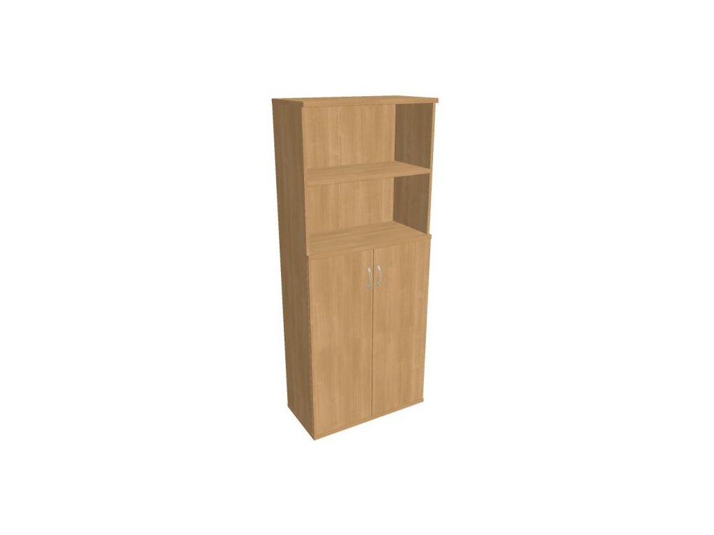 Kombinovaná skriňa - dvere/nika. Kancelárske skrine STRONG majú robustnú konštrukciu a vyššiu nosnosť políc ako bežné kancelárske skrine.V ponuke sú skriňové moduly s výškou 185 cm, 111 cm alebo 74 cm a šírky 80 cm alebo 40 cm.Hĺbka všetkých modelov skriňového radu STRONG je 40 cm.Chrbát, vyrobený z 8 mm hrubých dosák, je obojstranne pohľadový, takže skrine môžete použiť ako priestorový deliaci prvok. Hrúbka samotných políc je 25 mm, čo znamená nosnosť 80 kg na 1 policu.Korpusy, dvierka a police skríň sú olepené odolnou 2mm ABS hranou, ktorá garantuje dostatočnú ochranu proti poškodeniu.