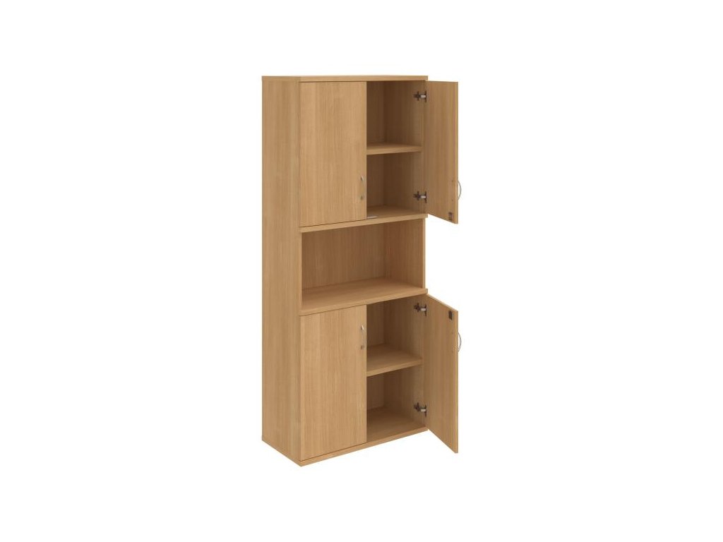 Kombinovaná skriňa - dvere/nika. Kancelárske skrine STRONG majú robustnú konštrukciu a vyššiu nosnosť políc ako bežné kancelárske skrine.V ponuke sú skriňové moduly s výškou 185 cm, 111 cm alebo 74 cm a šírky 80 cm alebo 40 cm.Hĺbka všetkých modelov skriňového radu STRONG je 40 cm.Chrbát, vyrobený z 8 mm hrubých dosák, je obojstranne pohľadový, takže skrine môžete použiť ako priestorový deliaci prvok. Hrúbka samotných políc je 25 mm, čo znamená nosnosť 80 kg na 1 policu.Korpusy, dvierka a police skríň sú olepené odolnou 2mm ABS hranou, ktorá garantuje dostatočnú ochranu proti poškodeniu.