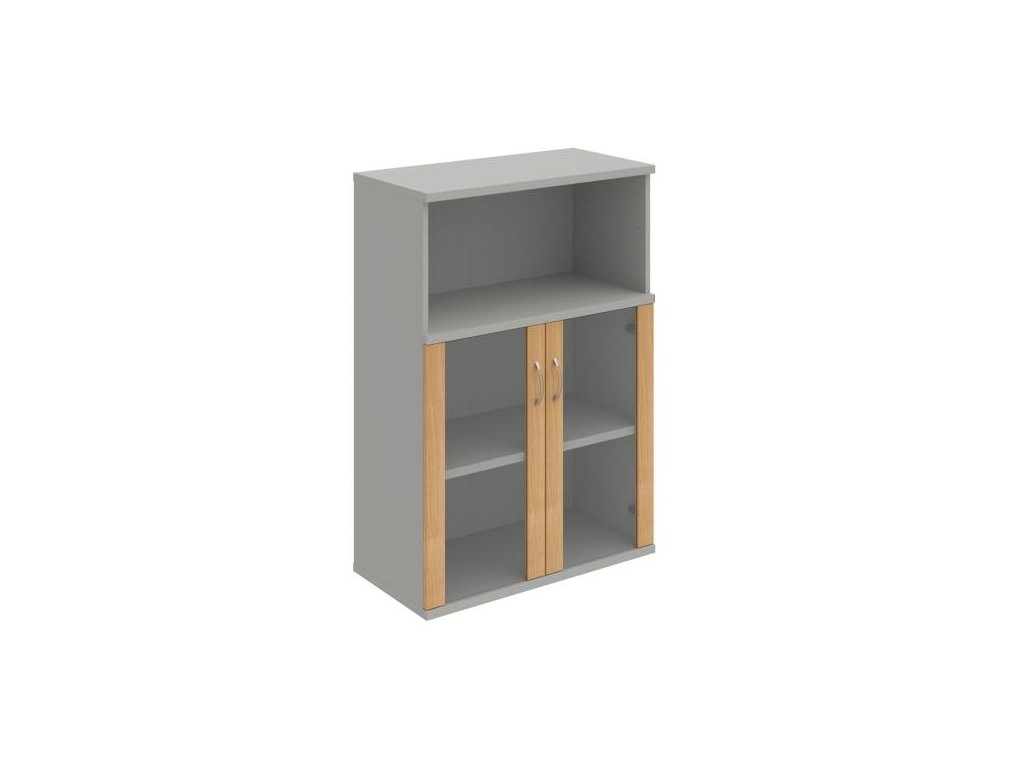 Kombinovaná skriňa - dvere/nika. Kancelárske skrine STRONG majú robustnú konštrukciu a vyššiu nosnosť políc ako bežné kancelárske skrine.V ponuke sú skriňové moduly s výškou 185 cm, 111 cm alebo 74 cm a šírky 80 cm alebo 40 cm. Hĺbka všetkých modelov skriňového radu STRONG je 40 cm.Chrbát, vyrobený z 8 mm hrubých dosák, je obojstranne pohľadový, takže skrine môžete použiť ako priestorový deliaci prvok. Hrúbka samotných políc je 25 mm, čo znamená nosnosť 80 kg na 1 policu.Korpusy, dvierka a police skríň sú olepené odolnou 2mm ABS hranou, ktorá garantuje dostatočnú ochranu proti poškodeniu.
