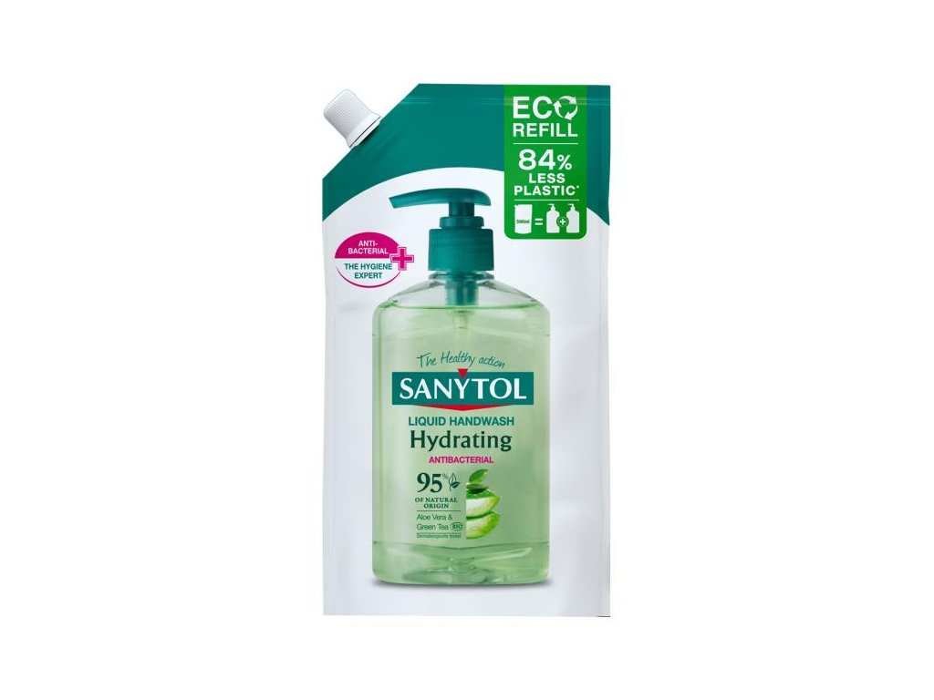 Antibakteriálne mydlá Sanytol obsahujú 95 % zložiek prírodného pôvodu, vďaka čomu sú omnoho šetrnejšie k pokožke. Sú dermatologicky testované, hypoalergénne a ničia baktérie v kratšom čase než štandardné tekutá mydlá.Náhradná náplň antibakteriálneho mydla s výťažkami z Aloe vera a zo zeleného čaju pre prirodzenú a dlhotrvajúcu hydratáciu pokožky. Ekologické balenie náplne na dve doplnenia dávkovača.