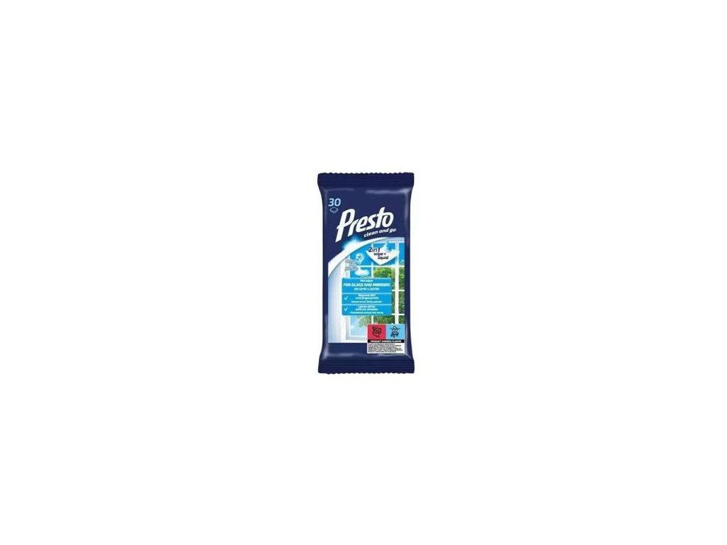 PRESTO CLEAN VLHČENÉ UTIERKY - SKLO a ZRKADLO 30 ks. Univerzálne utierky Presto sú určené na čistenie sklenených povrchov. Účinne odstraňuju nečistoty, mastnotu a zabraňujú usadzovaniu prachu.Dodatočné parametre