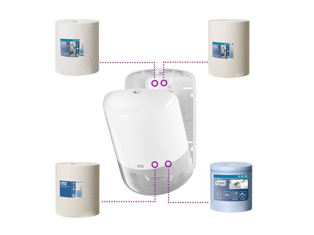 Tork® zásobník so stredovým odvíjaním s dizajnom Elevation je vysoko kompaktné, viacúčelové riešenie pre profesionálne prostredia, kde sú na utieranie povrchu potrebné obe ruky. Rýchle utieranie povrchov vďaka plynulému neobmedzenému prúdu, čo umožňuje používateľom zobrať toľko, koľko vyžadujú ich úlohy.Rozmery zásobníka (šxdxv): 23,9 x 22,7 x 36cm