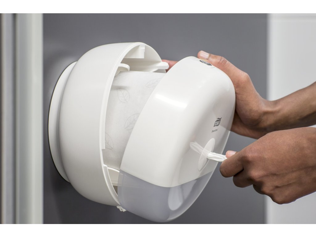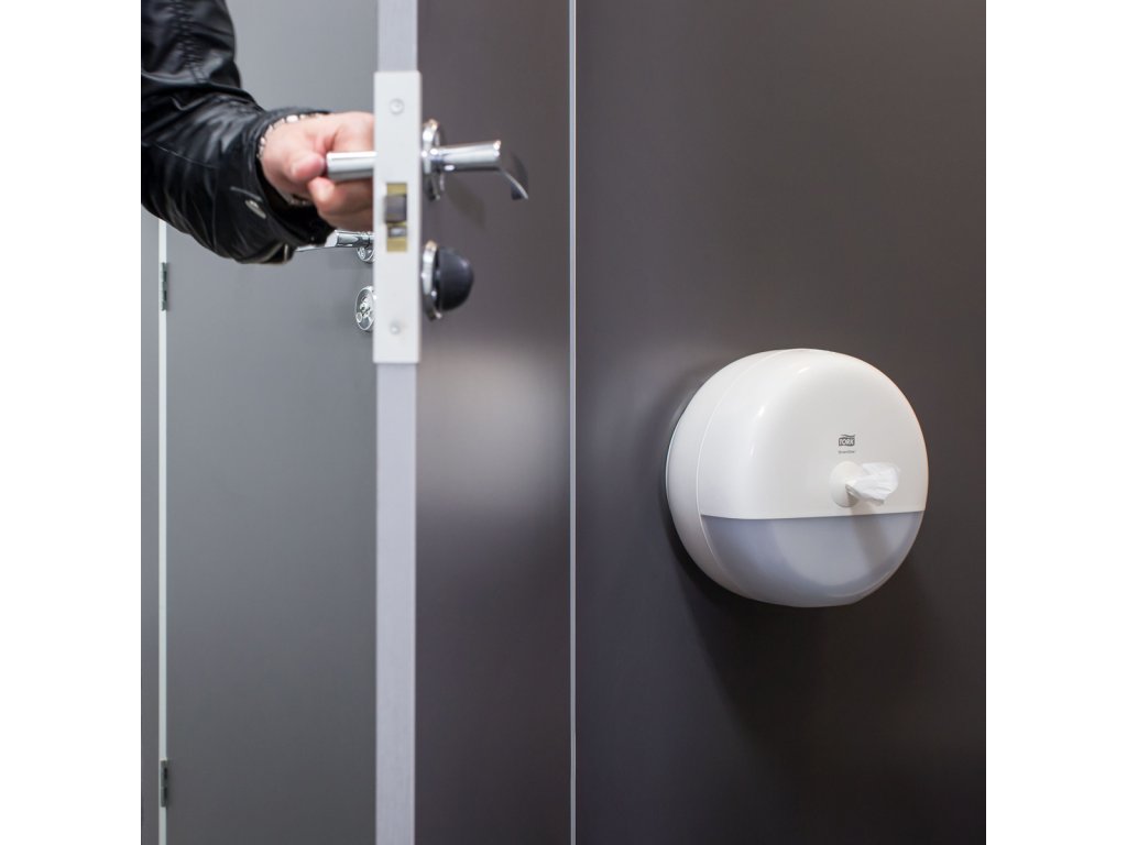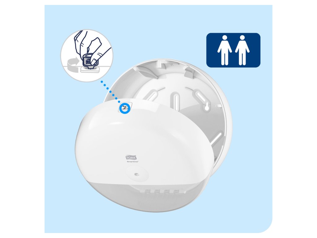 Tork SmartOne® mini zásobník na toaletný papier v dizajne Elevation je moderný a efektívny systém zásobníkov vhodný pre toalety a umyvárne s nízkou až strednou návštevnosťou, kde je požadovaná vyššia odolnosť. Dávkovanie po útržkoch pomáha znižovať spotrebu až o 40 % v porovnaní s tradičnými jumbo kotúčovými zásobníkmi, čo znamená viac návštev na jeden kotúč. Zásobníky Tork Elevation majú praktický a moderný dizajn, ktorý zanecháva v hosťoch dlhodobý dojem.Robustný dizajn s uzamykaním chráni kotúč a predchádza vandalizmu v náročnom prostredí