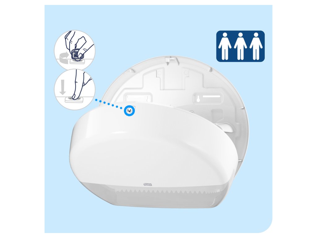 Tork zásobník na toaletný papier Jumbo kotúč v dizajne Elevation je vhodný pre vysoko frekventované miesta. Jeho mimoriadne veľká kapacita šetrí čas na údržbu a zaisťuje, aby bol papier vždy k dispozícii.Materiál: plast